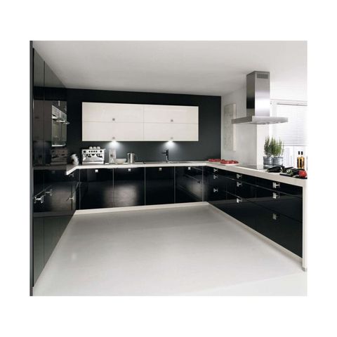פרימה l בצורת ארונות מטבח יוקרתיים סטים מלאים סטים מוכנים להרכיב שחור חכם מט לכה mdf ארון מטבח